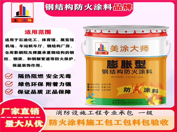 室外超薄型钢结构宿豫防火涂料是一种由复合材料、阻燃材料、防火填料等组成,并选用最新型的阻燃剂、发泡、发炭、催化剂等加工而成的新型宿豫防火涂料。该涂料涂层薄、用量少、耐火时间长,粘结力强,耐候、抗冲击、耐冻融性好。并具有较好的耐化工大气腐蚀性,涂层遇火时迅速膨胀增厚,形成发泡致密、均匀的隔热层,延长了耐火时间,从而达到防火保护作用。耐火时间根据等级不同可达0.50 h -2.00 h不等。